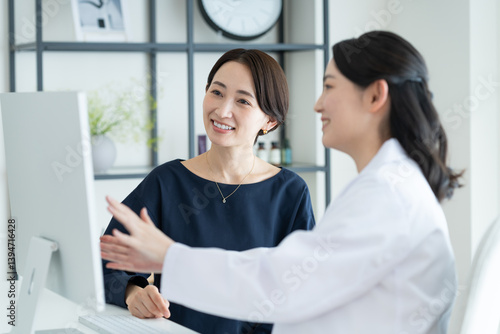 © pain au chocolat, Fototapeta premium 美容外科で診察を受けるミドルの女性
