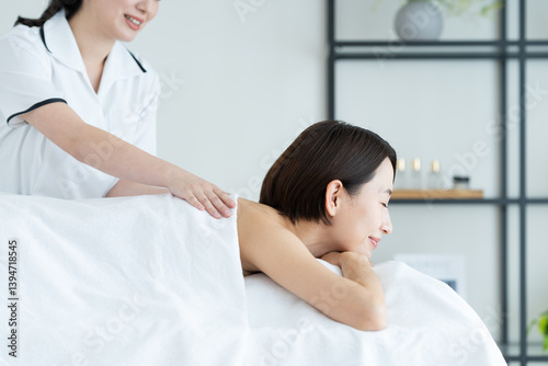 © pain au chocolat, Obraz premium エステでマッサージを受けるミドルの女性
