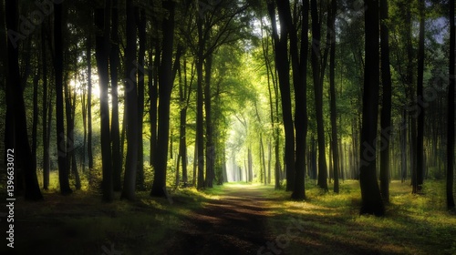 © NOREAL, Obraz premium 光の差す森林