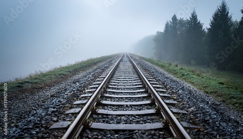 © bethko., Fototapeta premium 雨の日の線路、遠くまで続くレール