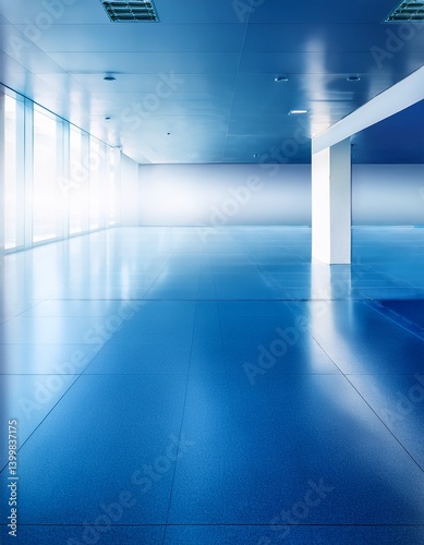 © Shousei, Obraz premium ライトブルーからダークブルーの冷徹な色合いに、斜めに走る白い光が加わり、透明感と冷静なエネルギーが調和したクールな空間を作り上げるデザイン。