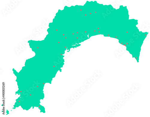 Obraz premium 高知県 地図 グリーン 斑点 イラスト