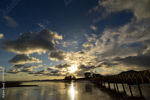 Obraz premium 朝日、空、雲、海、青森県、平内町