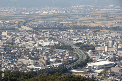 Fototapeta premium 高良大社境内から見る九州自動車道の久留米インターチェンジ(福岡県)