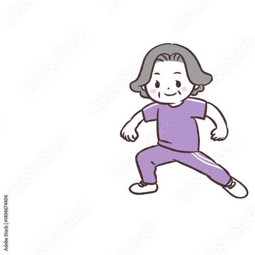 © おひさまストック, Obraz premium 反復横跳びするシニア女性のイラスト