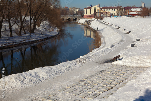 Obraz premium Набережная реки Исеть и памятник компьютерной клавиатуре. Екатеринбург.