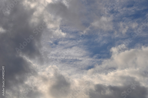 Obraz premium 青空と雲、空の彼方に続く鉄道