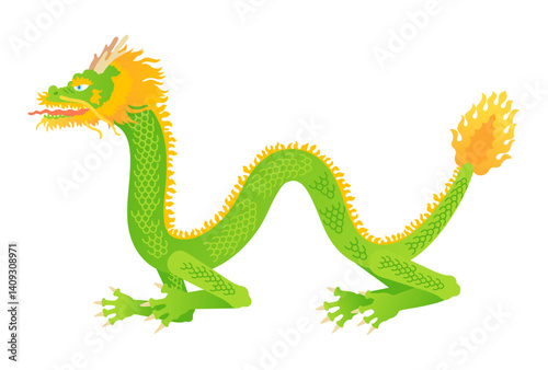 © Dahlia, Obraz premium 緑色の東洋の龍の全身イラスト