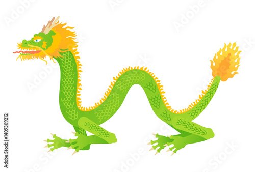 © Dahlia, Obraz premium 緑色の東洋の龍の全身イラスト