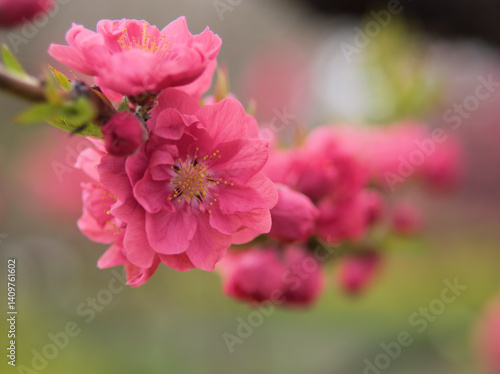 © 琢人 齋藤, Fototapeta premium 4月に咲いた桃色の桃の花「寒緋(カンヒ)」