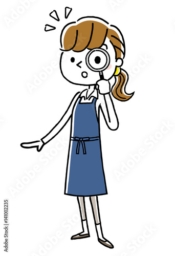Fototapeta premium エプロン姿の女性:調べる、虫眼鏡