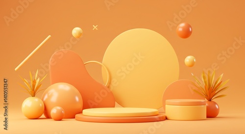 Fototapeta premium オレンジ色パステル調 優しい光で彩る 立体幾何学デザイン