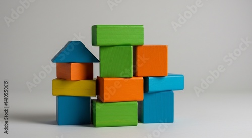 Obraz premium 鮮やか色彩の木製ブロック積み木 創造的配置