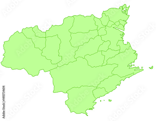 Obraz premium 徳島県 地図 黄緑 イラスト