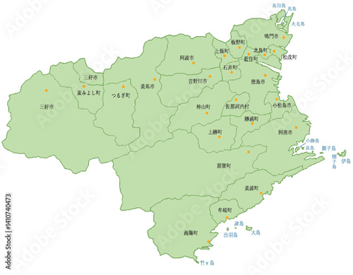 Obraz premium 徳島県 地図 黄緑 斑点 イラスト