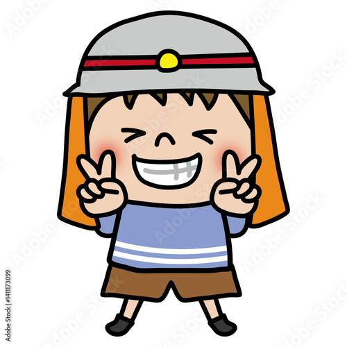 © てがきっず, Obraz premium 消防士の帽子を被る子供(男の子1)