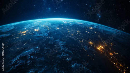 © AYUMI, Fototapeta premium 宇宙空間に浮かぶネットワークでつながるデジタル地球