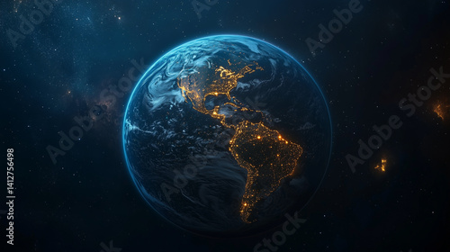 Obraz premium 宇宙空間に浮かぶネットワークでつながるデジタル地球