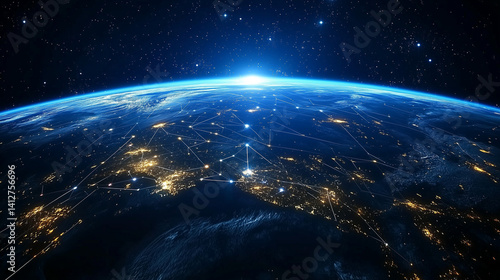 Fototapeta premium 宇宙空間に浮かぶネットワークでつながるデジタル地球