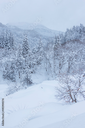 Obraz premium 雪を被った樹木の並ぶ風景 鳥取県 氷ノ山