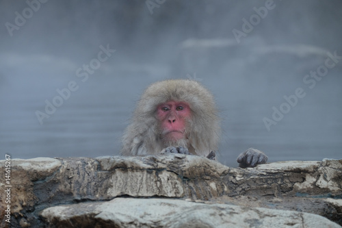 Naklejka premium 温泉と猿 地獄谷野猿公苑にて
