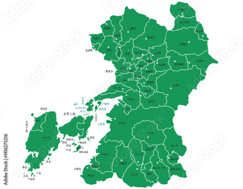 Obraz premium 熊本県 地図 グリーン 斑点 イラスト