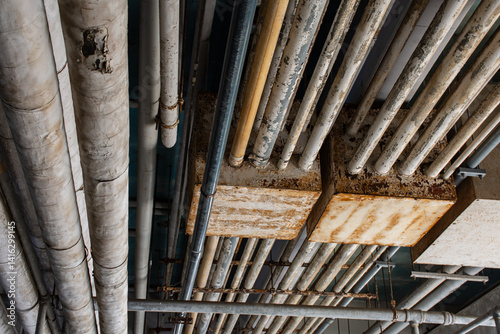 © TOMOCK, Fototapeta premium 建物の天井に設置されたパイプや装置