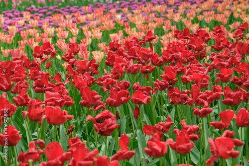 Fototapeta premium 春・季節の背景 咲いたカラフルなチューリップの花畑
