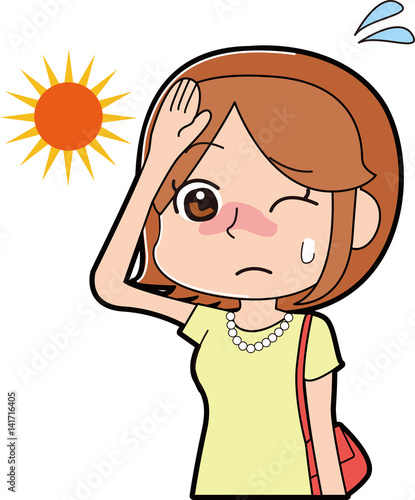 © かわいいコミカルイラスト素材集, Obraz premium 日焼けしそうな女性のイラスト