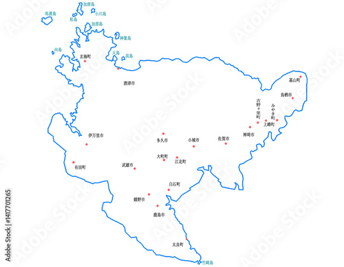 Obraz premium 佐賀県 地図 白 斑点 イラスト