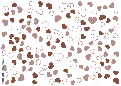 © しるくはっと, Obraz premium ハート柄の背景 茶系の3色 フチと単色 ハート