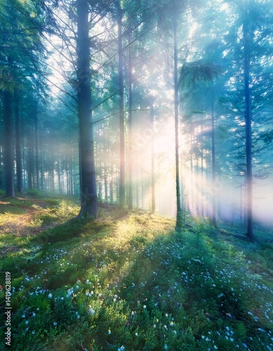 Obraz premium 柔らかな霧が漂う幻想的な森