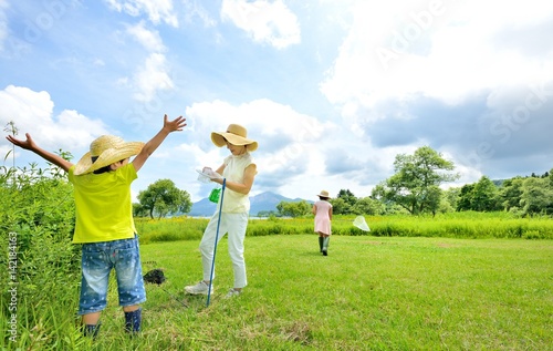 © godfather, Fototapeta premium 緑の高原で遊ぶファミリー