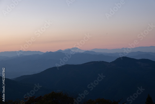 Fototapeta premium 夕暮れの連なる山並み(横位置) - 埼玉県比企郡ときがわ町,日本