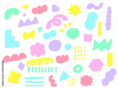 Fototapeta premium 手描きあしらいセット 幾何学模様 パターン パステルカラー