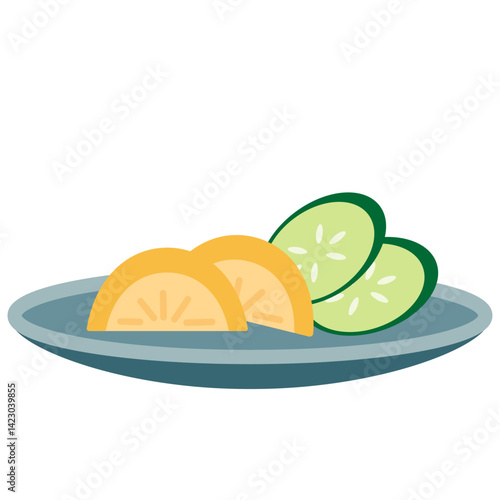 © OrangeEtFille, Fototapeta premium 皿に盛った沢庵ときゅうりの漬物のイラスト