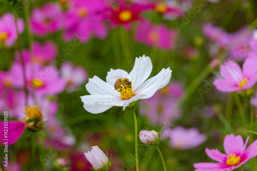 © Kazutaka, Obraz premium ミツバチと白いコスモスの共演