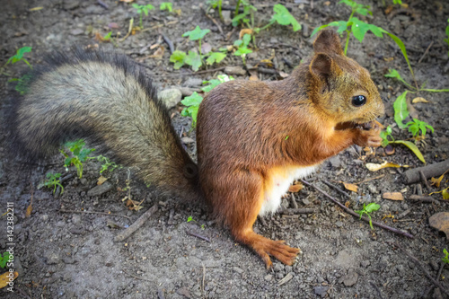 © danysharipova, Obraz premium Маленькая рыжая белка в лесу