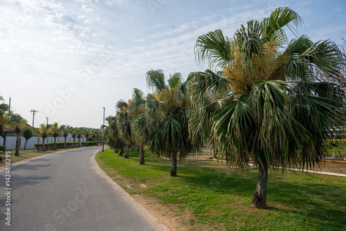 Obraz premium ヤシの木が並ぶ道