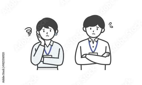 © chaiko, Naklejka premium 悩みを抱えるオフィスカジュアル姿の男女(バストアップ)