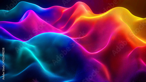 © SHOKO, Obraz premium カラフルな波状メッシュの背景素材