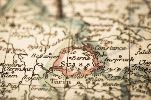 Naklejka premium アンティークの古地図 スイス