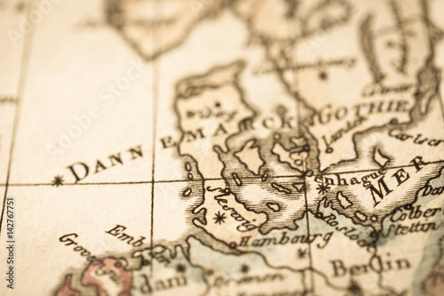 © moonrise, Fototapeta premium アンティークの古地図 デンマーク