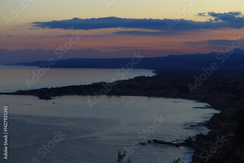 Obraz premium 夕暮れのタオルミーナの街並み