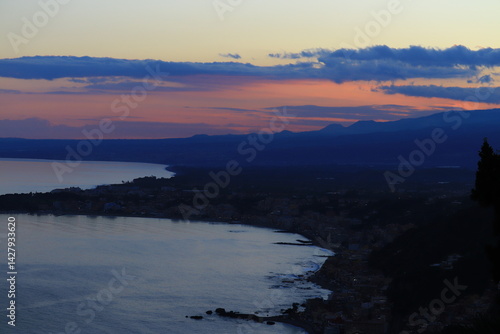 Obraz premium 夕暮れのタオルミーナの街並み