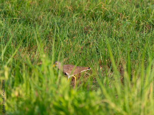 Obraz premium 八尾空港の草むらに隠れるケリ
