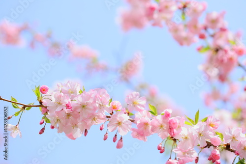 © naname21, Obraz premium 淡いピンクの思川桜 青空背景