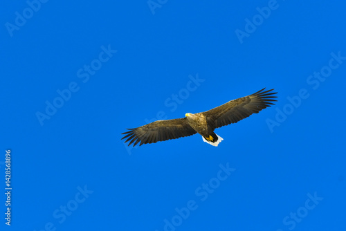 Obraz premium 冬に北海道の知床半島や釧路湿原で見られる大きな猛禽の仲間、勇敢で格好良いオジロワシ