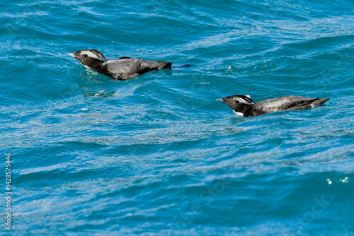 Naklejka premium 宮崎や伊豆諸島等、日本近海の海でしか見られない冠羽が特徴の天然記念物の海鳥、カンムリウミスズメ