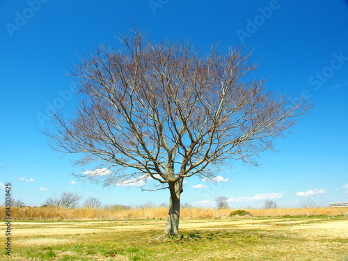 Obraz premium 春の河川敷の枯れ木